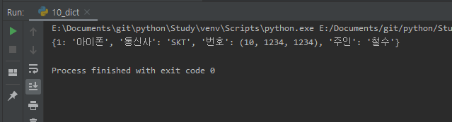 dict_test = {1:"아이폰", "IMEI":"IMEI12233", "통신사":"SKT", "번호":(10,1234,1234)}